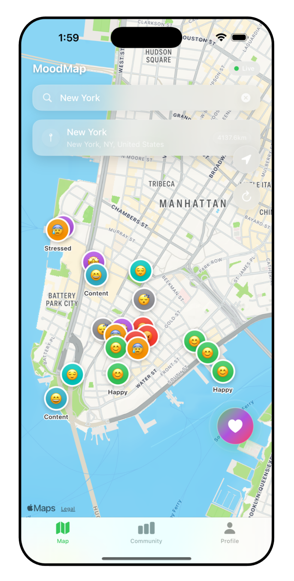 Only platform combining emotional intelligence + geography + real-time social connections
